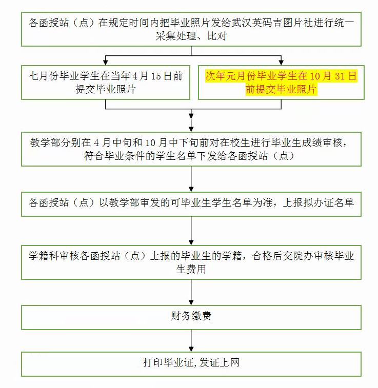 1、各函授站(點)盡早與武漢英碼吉圖片社聯系,及時按照要求把畢業照片發給武漢英碼吉圖片社進行統一采集處理,武漢英碼吉對畢業照片進行對比,并及時反饋給各函授站(點)比對結果,比對不通過的照片,各函授站(點)及時更換畢業照片再進行比對,到2022年10月31日截止。如果還不能通過,本次暫不能畢業辦證。對沒有通過的學生,需要學生書面提出復議申請,到當年成人高考報名點打印出考生信息核查表,提供高考報名前后的各類證件照片,由函授站(點)進行初審,并出具初審報告。由函授站(點)帶領學生本人,帶著相關資料于11月20日前到我院學籍科進行現場審核,審核通過的,我校向省教育廳上報相關資料申請復審,復審通過后,才能申請畢業。身份信息核查出現弄虛作假、冒名頂替等情況、或超過規定彈性學習期限的將作退學處理。