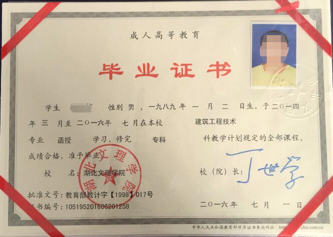 正式錄取的學員完成規定的全部課程,學習期滿,考試各科成績合格,由湖北文理學院頒發專科或本科畢業證書,國家承認學歷;電子注冊,網上查詢;本科畢業生符合授予學士學位條件者,可授予學士學位。