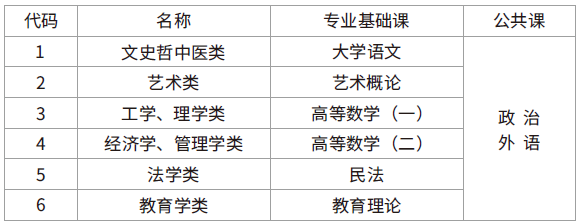 文科:語文、數(shù)學(文史類)、英語、歷史地理綜合理科:語文、數(shù)學(理工類)、英語、物理化學綜合